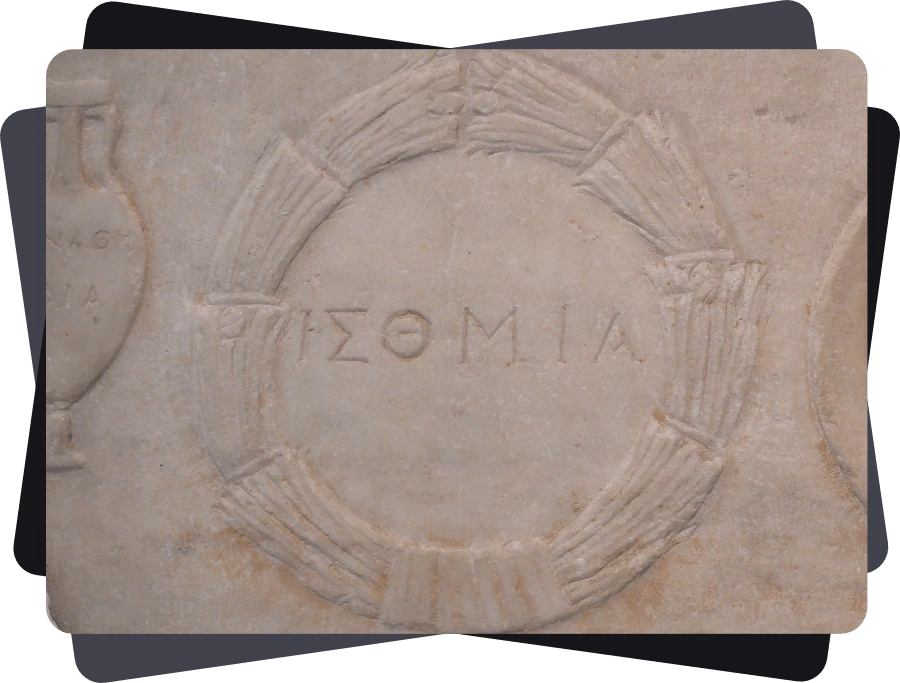 Die Isthmischen Spiele waren Teil der panhellenischen Wettkämpfe zu Ehren Poseidons. Im Frühling des ersten und dritten Jahres jeder Olympiade traten Athleten in Laufdisziplinen, Ring- und Boxkämpfen, Pankration und dem Pentathlon an. Austragungsort war ein heiliger Pinienhain nahe Korinth; mit Hippodrom, Stadion, Theater und Gymnasion.